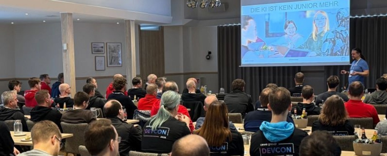 Unser Entwickler Arne war auf dem ersten internen Developer Event der CEWE Group und deren Tochterunternehmen. Vor Ort sprach Arne in seiner Keynote über das Thema "Sind wir die letzte Generation von Entwicklern? – KI in der Softwareentwicklung“ und fühlte damit auf den Zahn der Zeit in der Entwicklercommunity.